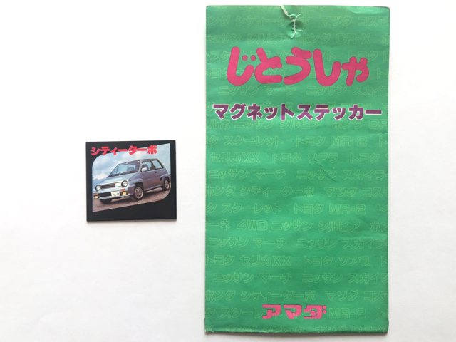 ■ アマダ - じどうしゃマグネットステッカー39×35mmのマグネットシート。駄菓子屋で売られていた20円の引き物くじ。アタリが出るともう1度引けた。