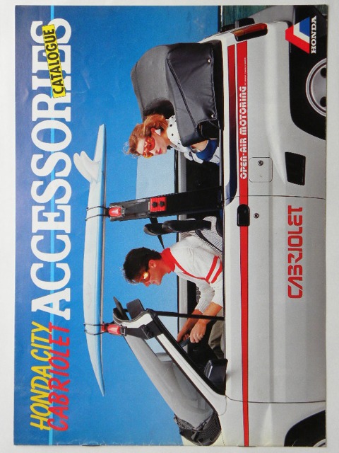 ■ アクセサリーカタログ4枚折り。CABRIOLET、TURBO II、R(後期型)、U、E III、PRO(後期型)。ホンダ用品技研。K6103。