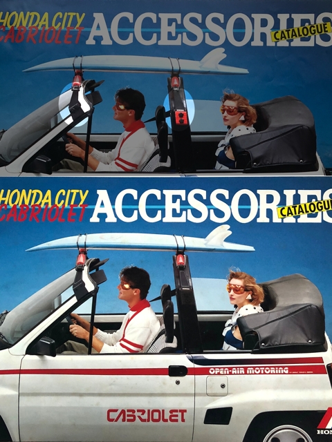 □ CABRIOLETアクセサリーカタログ6ページ。表紙および内容のキャリアベースの色などが修正された版(CC8407B)あり。ホンダ用品技研。