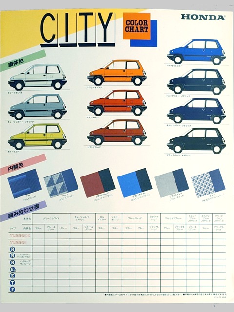 ■ カラーチャートパンフレット表裏1枚。TURBO、R、E、E1、PRO-F、PRO-T掲載。CTB-EE-BCS-209(N)。
