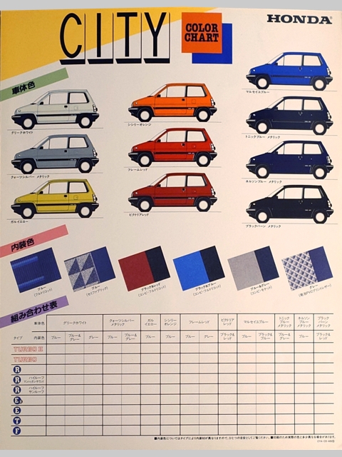 ■ TURBO II(前期型)カラーチャートパンフレット表裏1枚。TURBO II(前期型)パンフレットに付属。CTII-CS-310(N)。